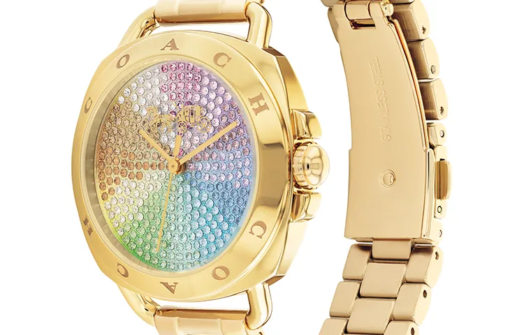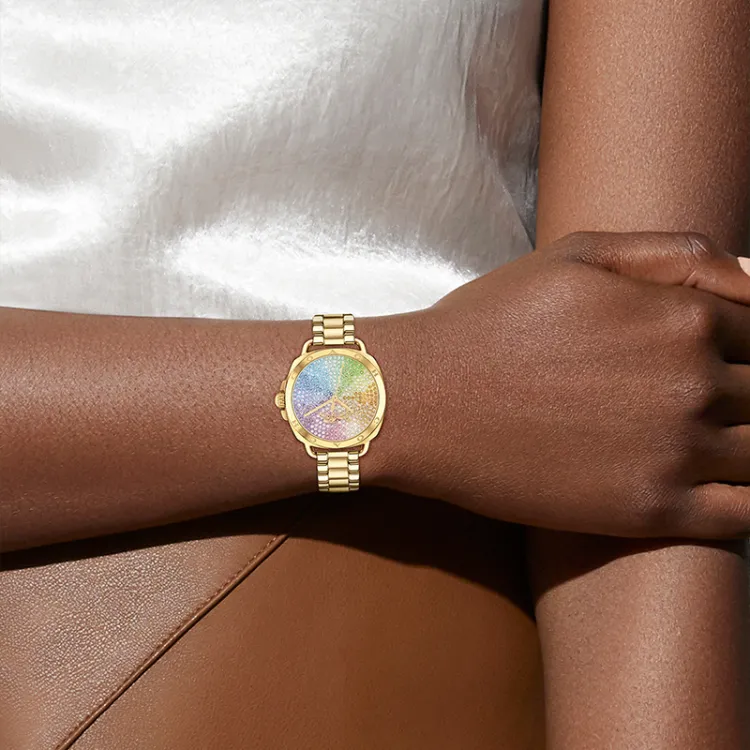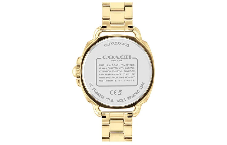 COACH TATUM Collection Женские часы Кварцевый механизм Ремешок из нержавеющей стали 34 мм Золотой циферблат