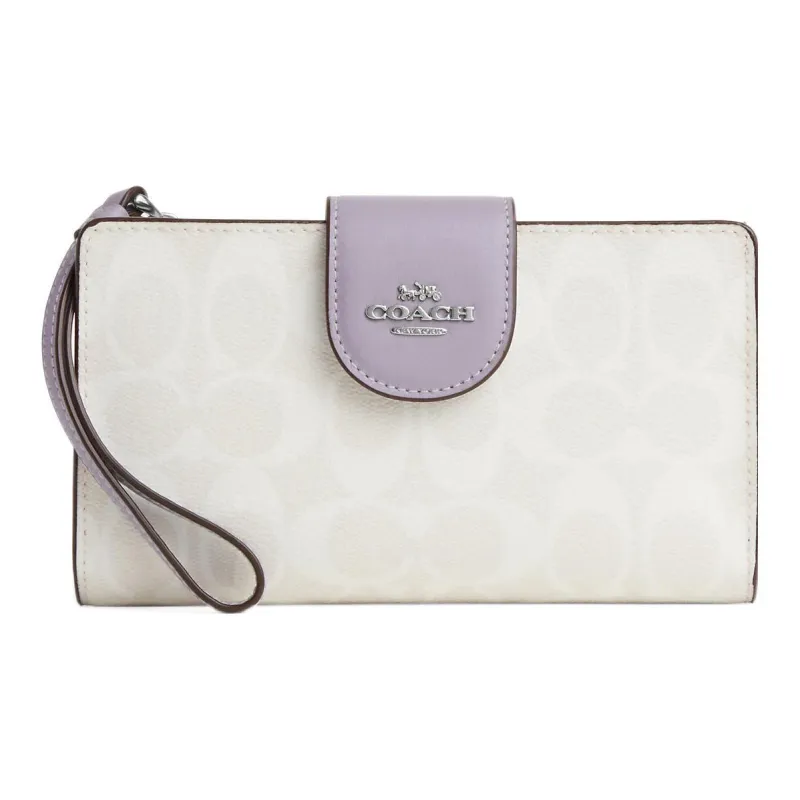 COACH Tech Wallet Холст с кожей Клатч Кошелек Маленький Женский Белый и Фиолетовый