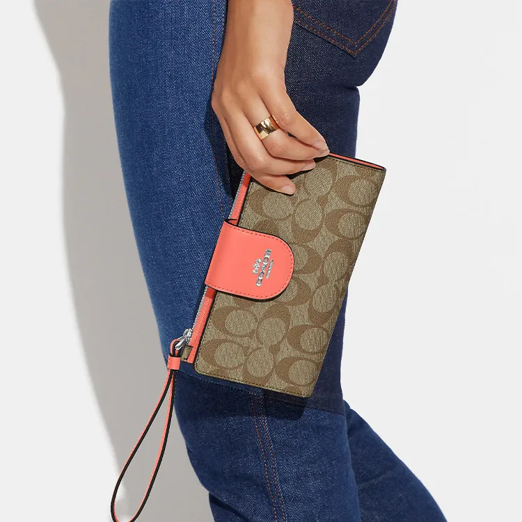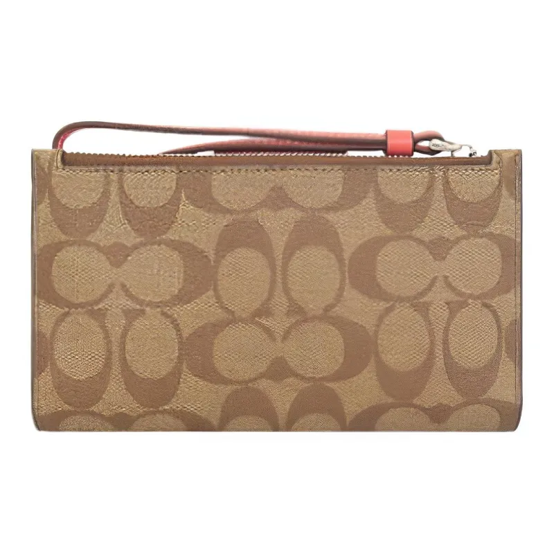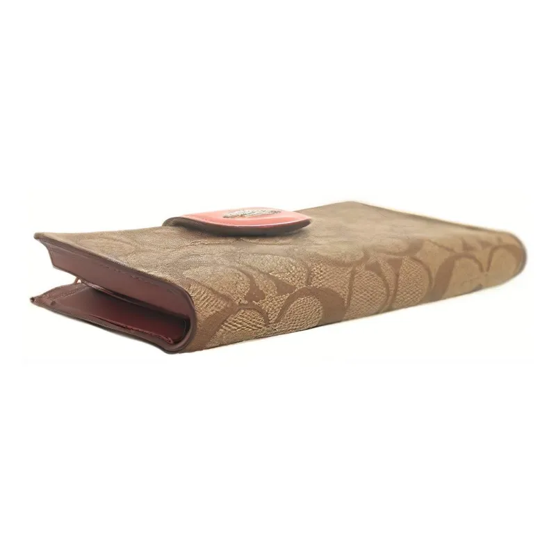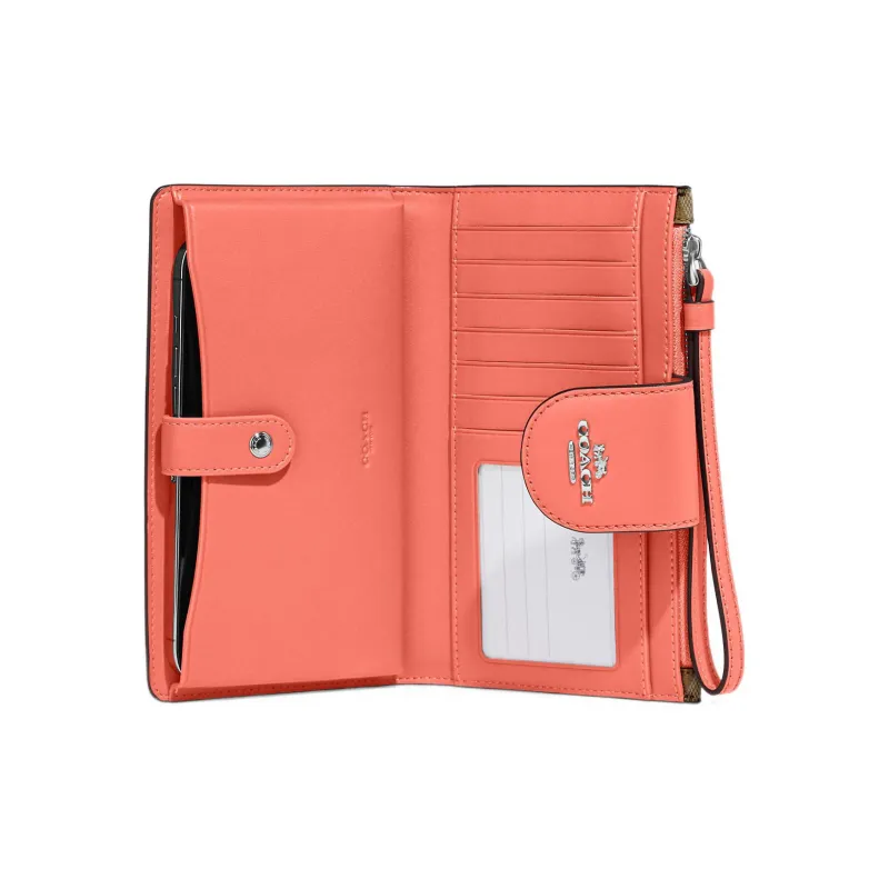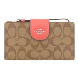 COACH Tech Wallet Холст с кожей Клатч Кошелек Женские Коричневый Апельсин