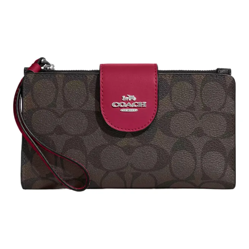 COACH Tech Wallet Холст и Кожа Клатч Кошелек Унисекс Коричневый и Ярко-фиолетовый