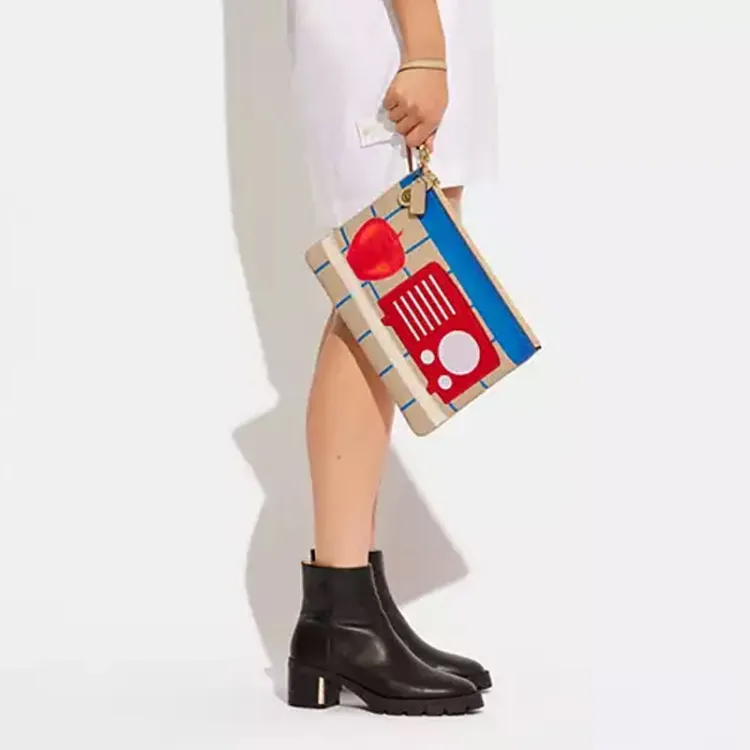 COACH TOM Wesselmann Коллаборация Wristlet Кожа Запястье Сумка Монетница Клатч Большой Унисекс Экрю