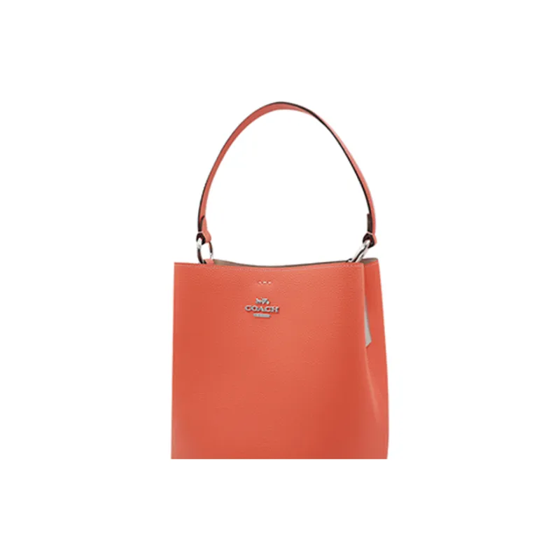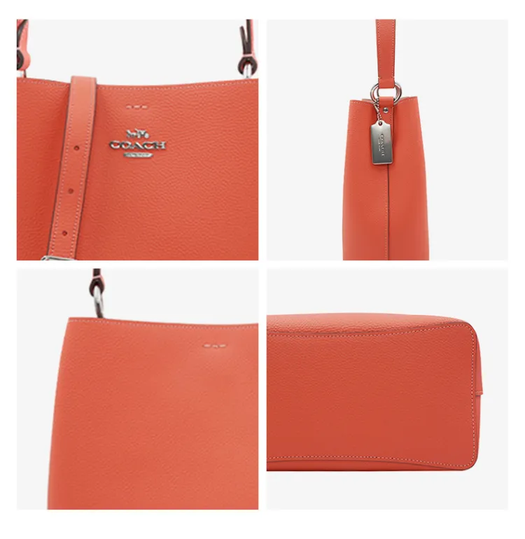 COACH Town GRAIN LEATHER Сумка-ведро Сумка через плечо среднего размера Женская Оранжевая Розовая