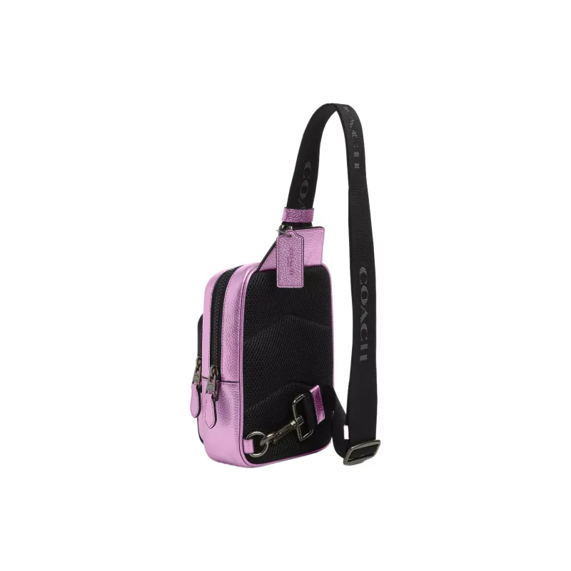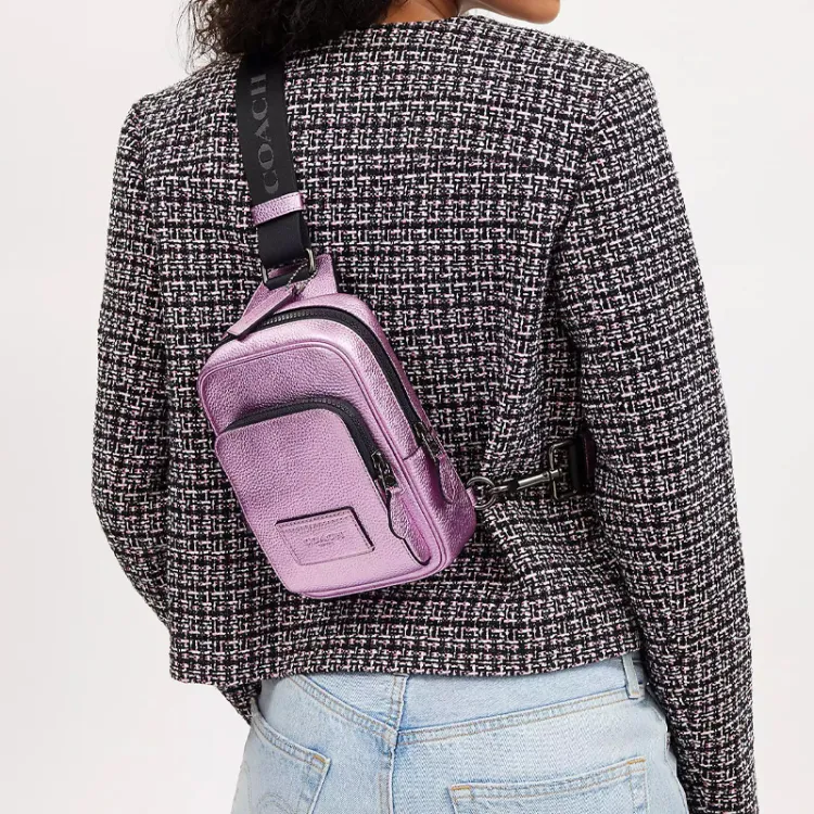 COACH Track Коровья кожа с тканью сумка через плечо сумка на одно плечо мини женская металлическая поверхность сиреневый фиолетовый