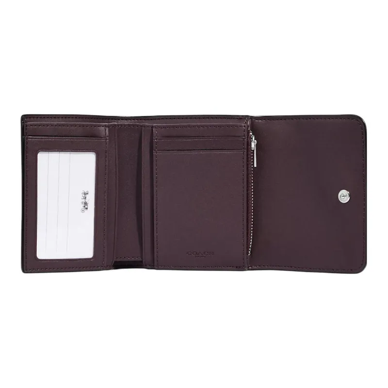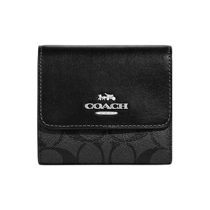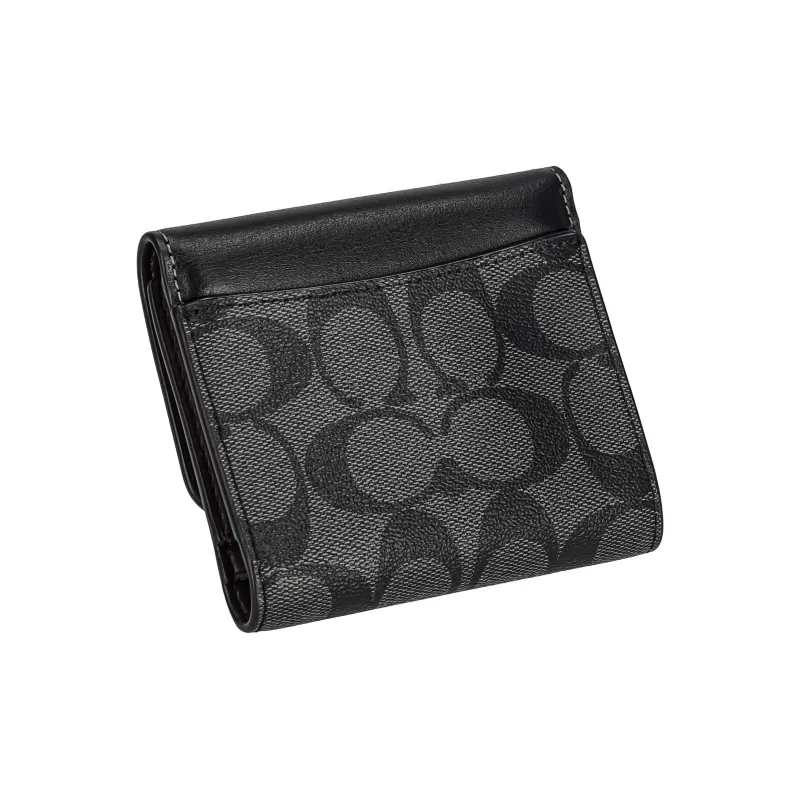 COACH Трехсекционный кошелек Фирменный холст с покрытием и гладкая кожа Держатель для карт кошелек Маленький Мужской Черный