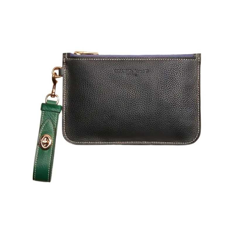 COACH Turnlock Личиевая кожа Кожа Кошелек Держатель для карт Сумка на запястье Клатч Маленький Женский Черный и Зеленый