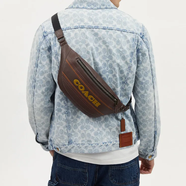 COACH Warren Коровья кожа Sling Сумка Одно плечо Через плечо Бананка Большая Мужская Темно-Кофейный