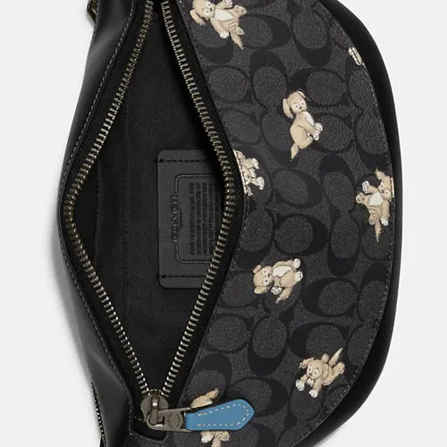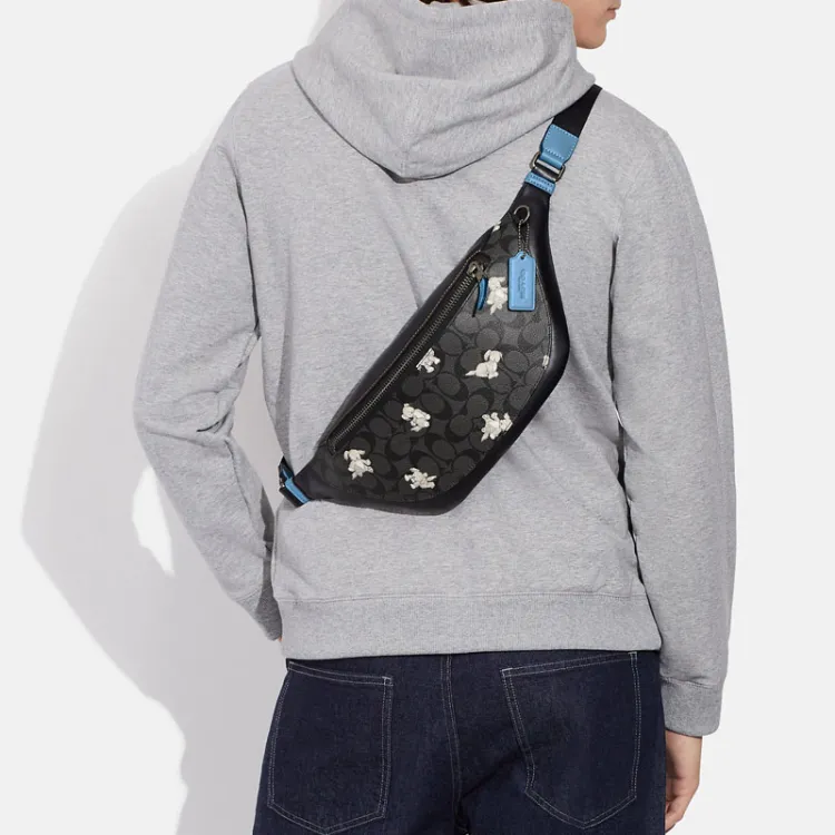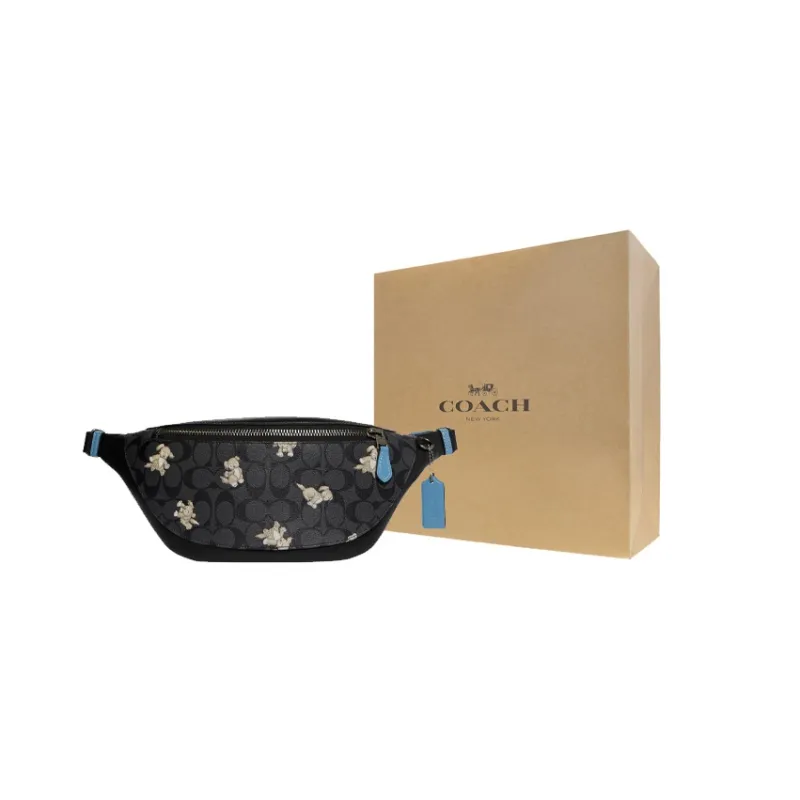COACH Warren Подпись Покрытый холст с утонченной телячьей кожей Сумка через плечо Бананка Большая Мужская Черная