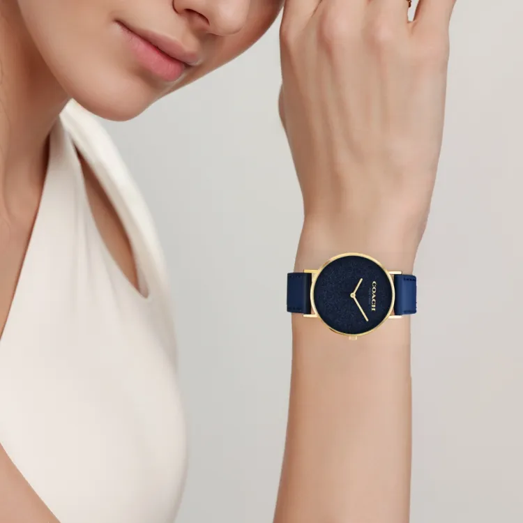 COACH Наручные часы Кварцевый механизм Кожаный ремешок 36 мм Черный циферблат Унисекс