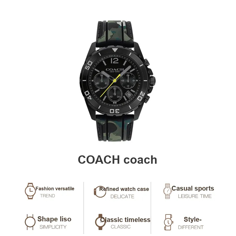 COACH Наручные часы Кварцевый механизм Силиконовый ремешок 44 мм Черный циферблат Унисекс 14602566