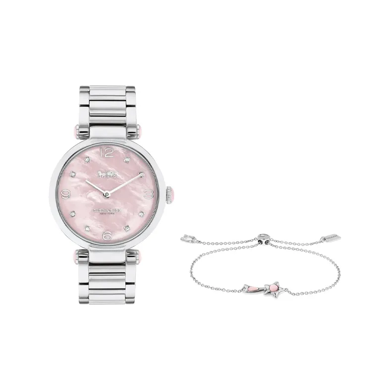 COACH Женские часы Кварцевый механизм Ремешок из нержавеющей стали 34 мм Розовый циферблат Часы
