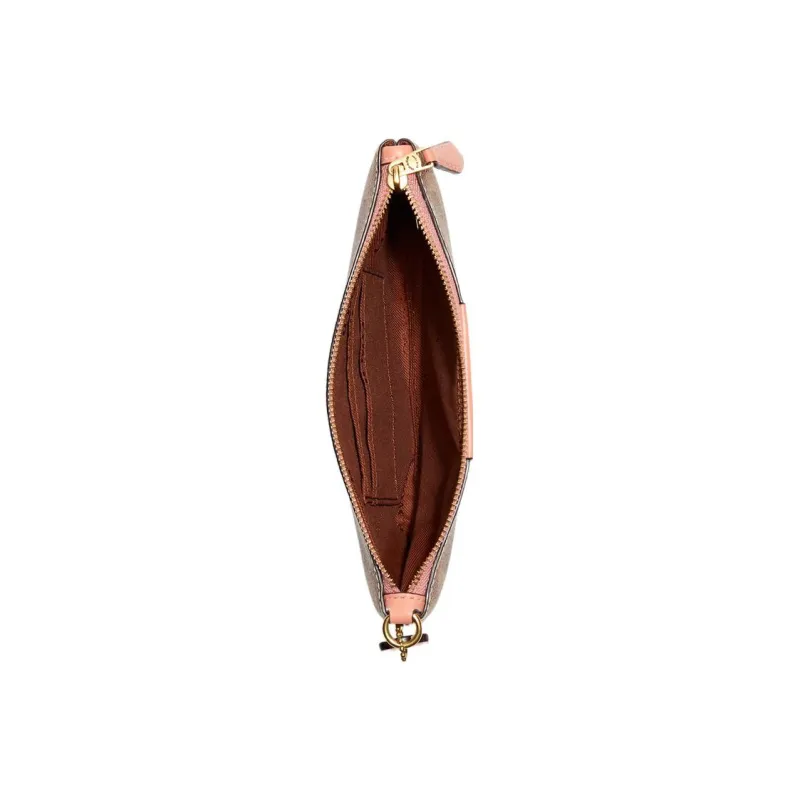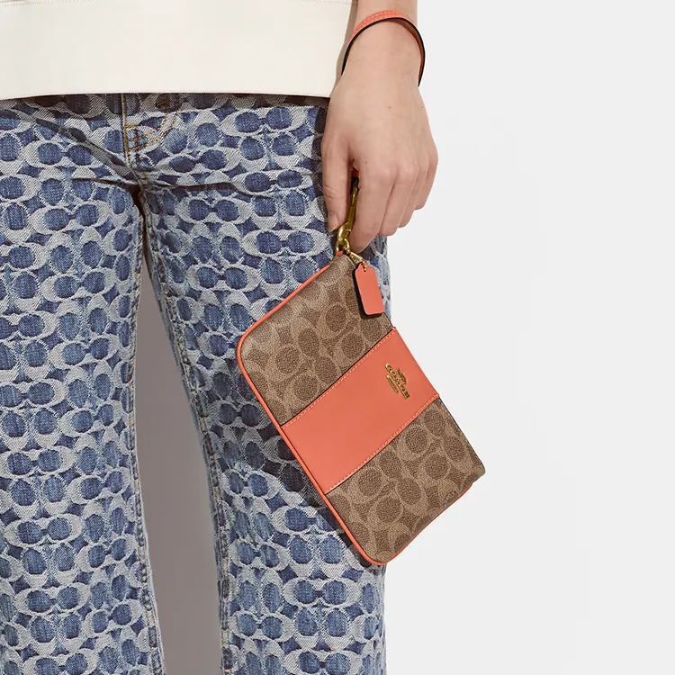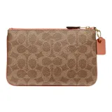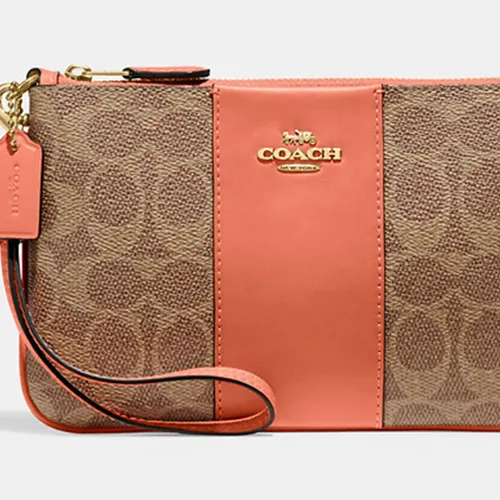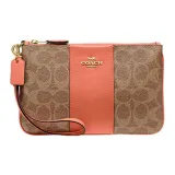 COACH Wristlet Покрытый холст с телячьей кожей запястный кошелек мелочь маленький женский хаки и светло-коралловый красный