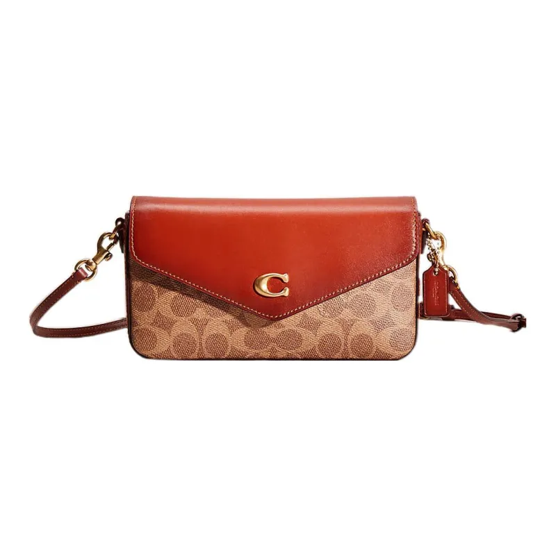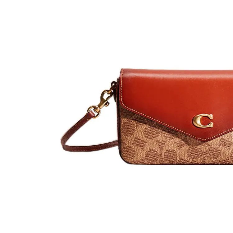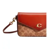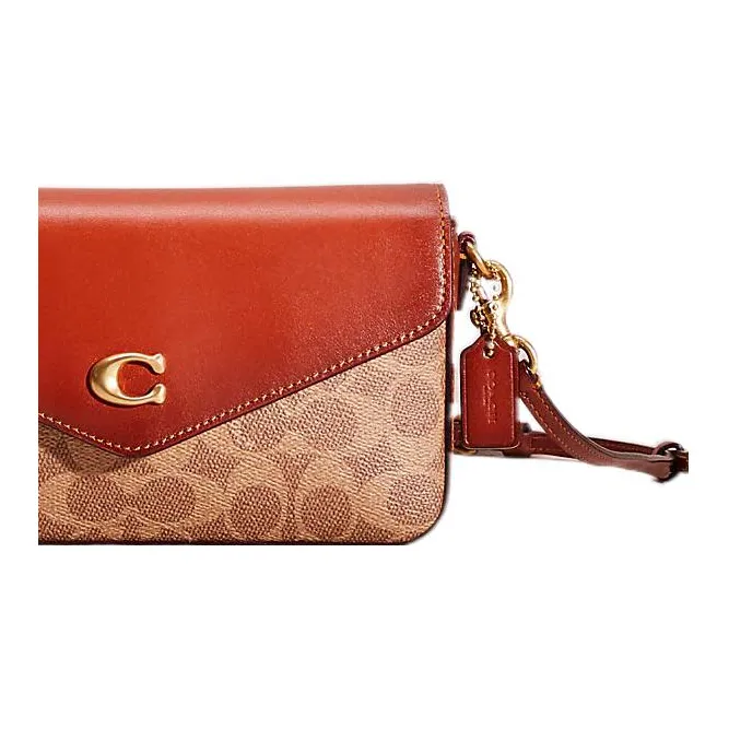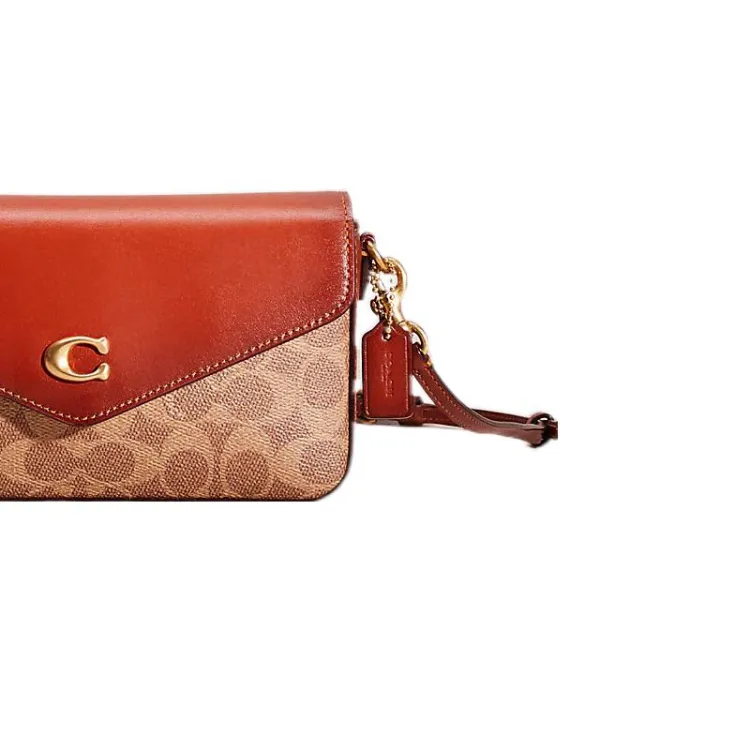 COACH Wyn Покрытие Холст с Утонченной Телячьей Кожей Сумка через плечо Маленькая Женская Коричневый и Умбра