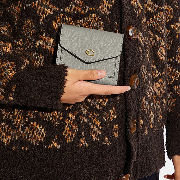 COACH Wyn Крестообразная текстура Спилок коровьей кожи Картхолдер Document Wallet Маленький Женские Серый