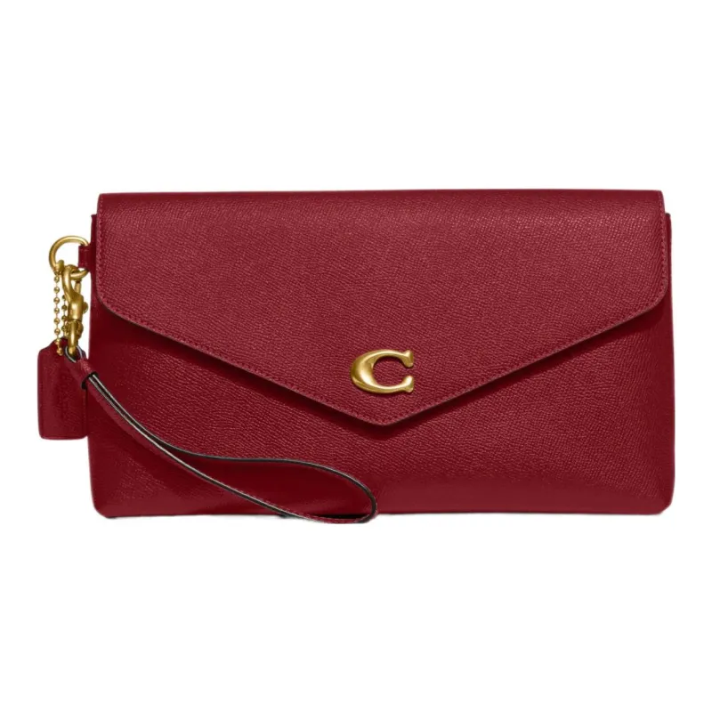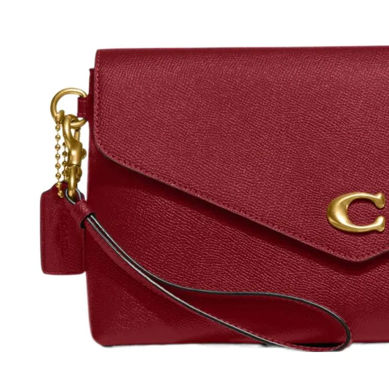 COACH Wyn GRAIN LEATHER Сумка на запястье Клатч Большая Женская Вишнево-красная