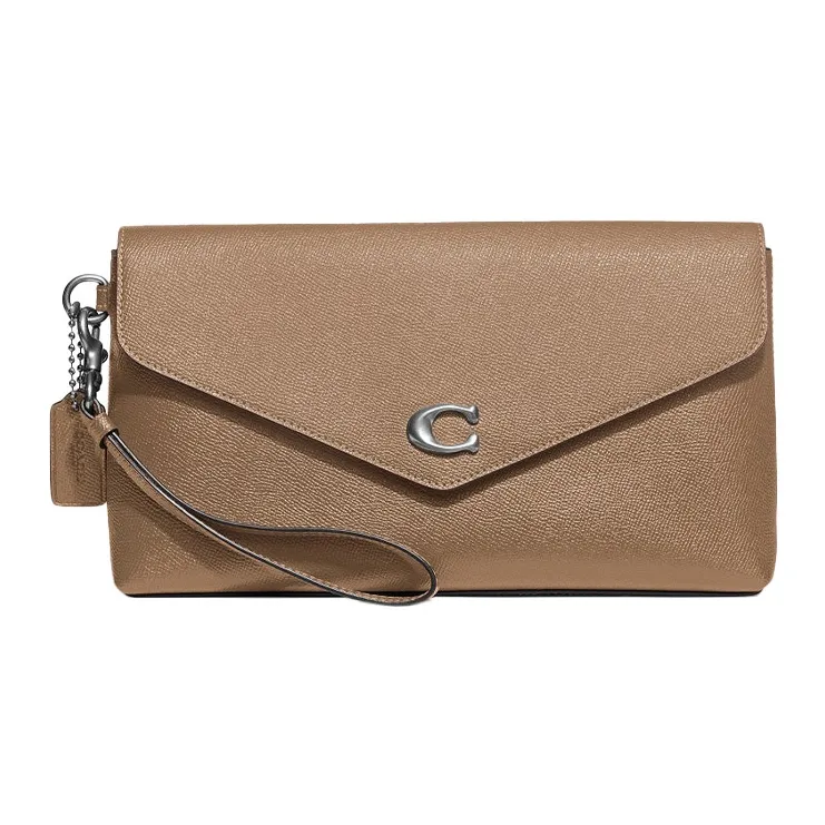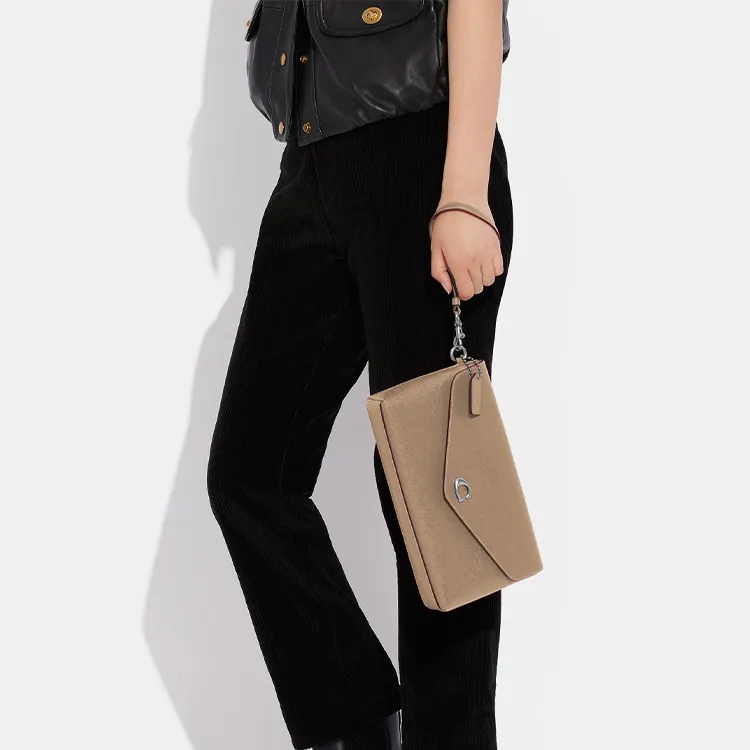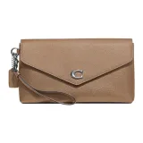 COACH Wyn GRAIN LEATHER Запястье Сумка Клатч Большой Женский Серый