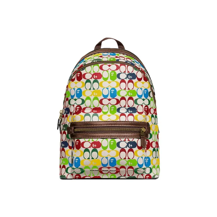 COACH X BAPE Collaboration ACADEMY Покрытый холст Телячья кожа Рюкзак Большой Унисекс Коричневый
