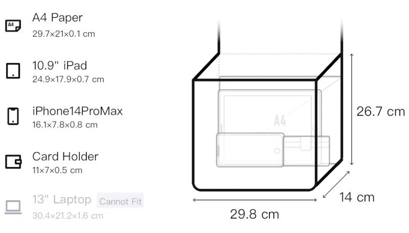 Д29,8*Ш14*В26,7 см