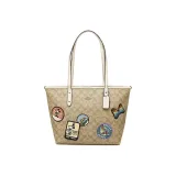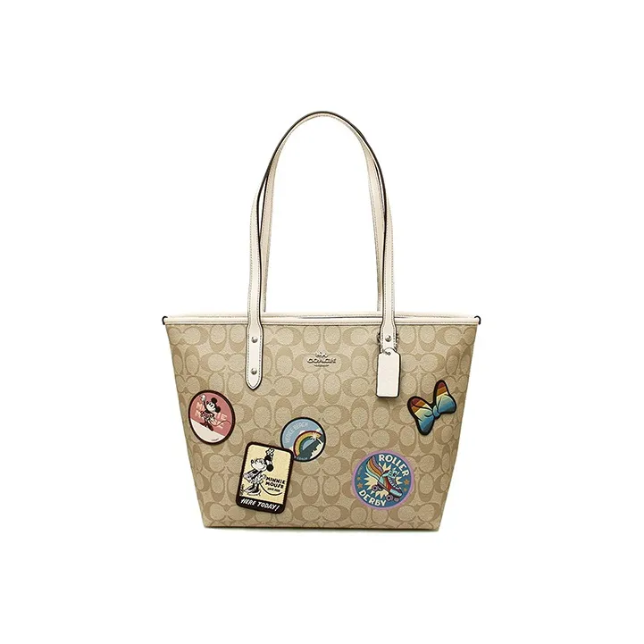 COACH X DISNEY City Zip Tote Холст с кожей Тоут Сумка Сумка для покупок Сумка на плечо Женская Хаки