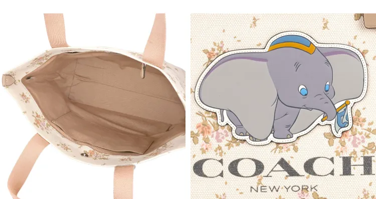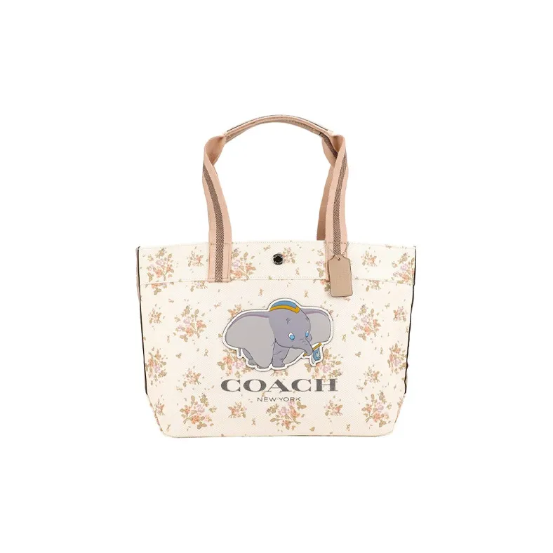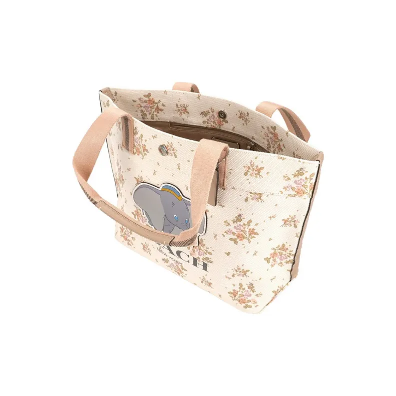 COACH X DISNEY Дамбо Коллаборация Холст с печатью кожа вставки тоут сумка сумка для покупок сумка на плечо большая женская экрю