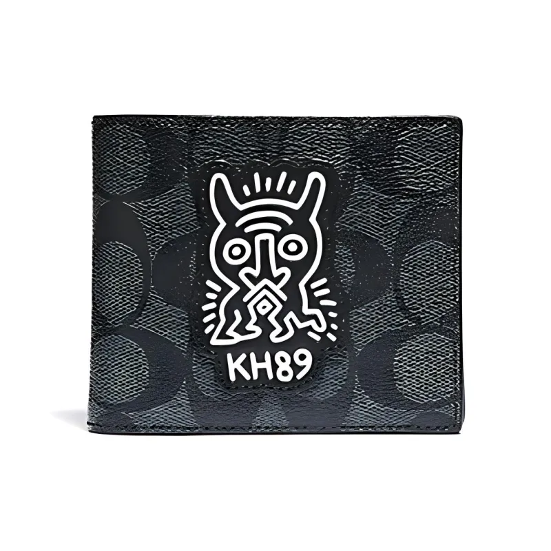 COACH X Keith Haring Коллаборация 3 IN 1 Wallet Холст Кошелек Держатель для карт Кошелек Стандартный Мужской Угольный Черный