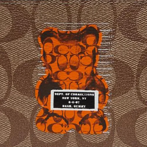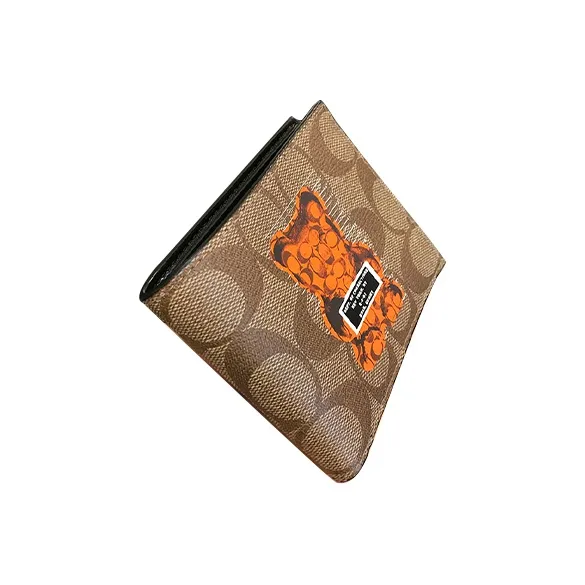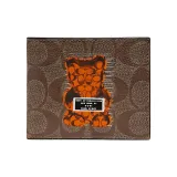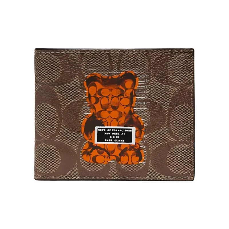 COACH X Vandal Желейный Медвежонок Коллаборация Billfold Wallet Холст с кожей Сумка из холста Кошелек Обычный Мужской Темный хаки