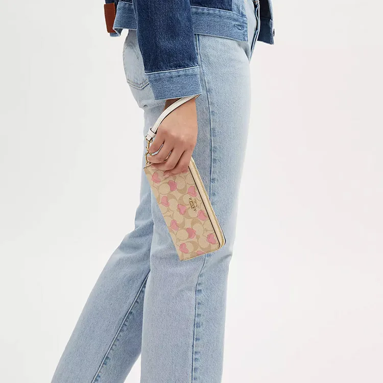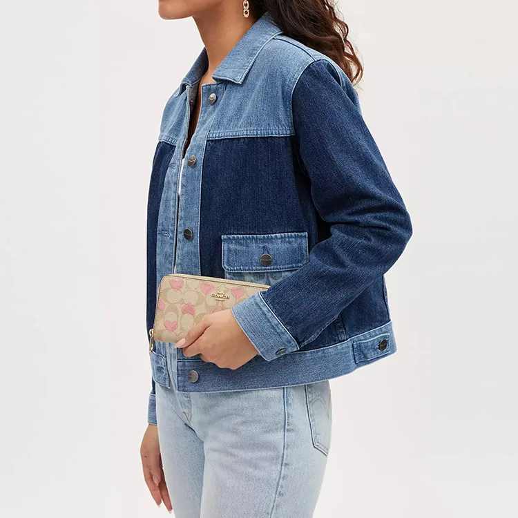 COACH Zip Around Холст и Кожа Кошелек Маленький Женский Золотой Светлый Хаки Меловый Разноцветный