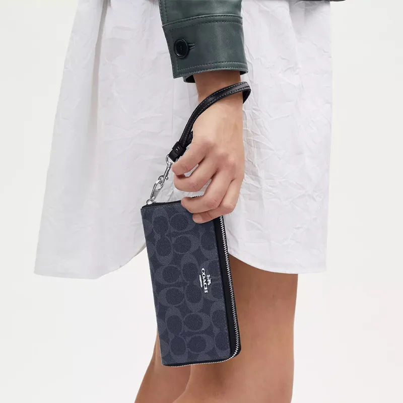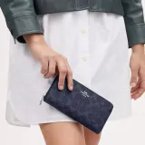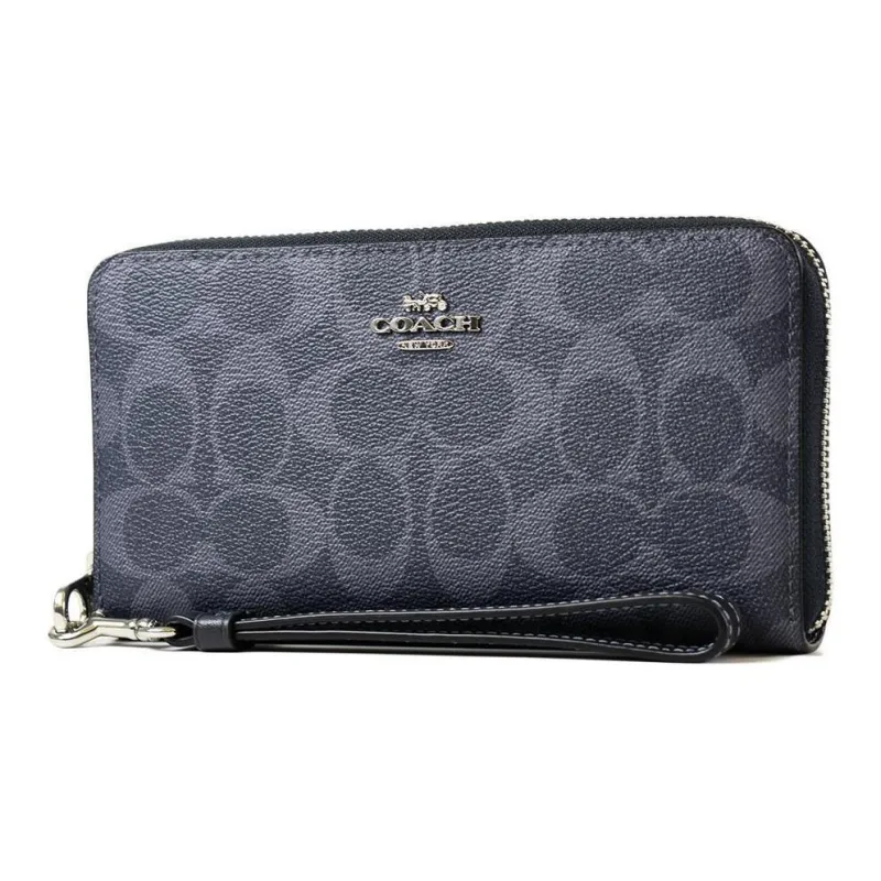 COACH Zip Around Холст с покрытием и гладкая кожа Клатч Кошелек Маленький Унисекс Полночь Морской синий