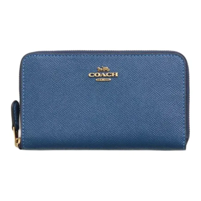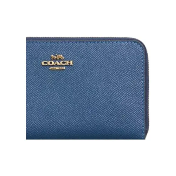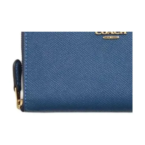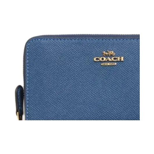 COACH Zip Around Крестообразная текстура Кожа Кошелек Средний Унисекс Синий