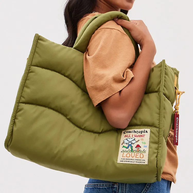 Coachtopia Переработанный полиэстер Тоут Сумка Сумка для покупок Сумка на плечо Сумка Большая Женская Оливково-зеленая