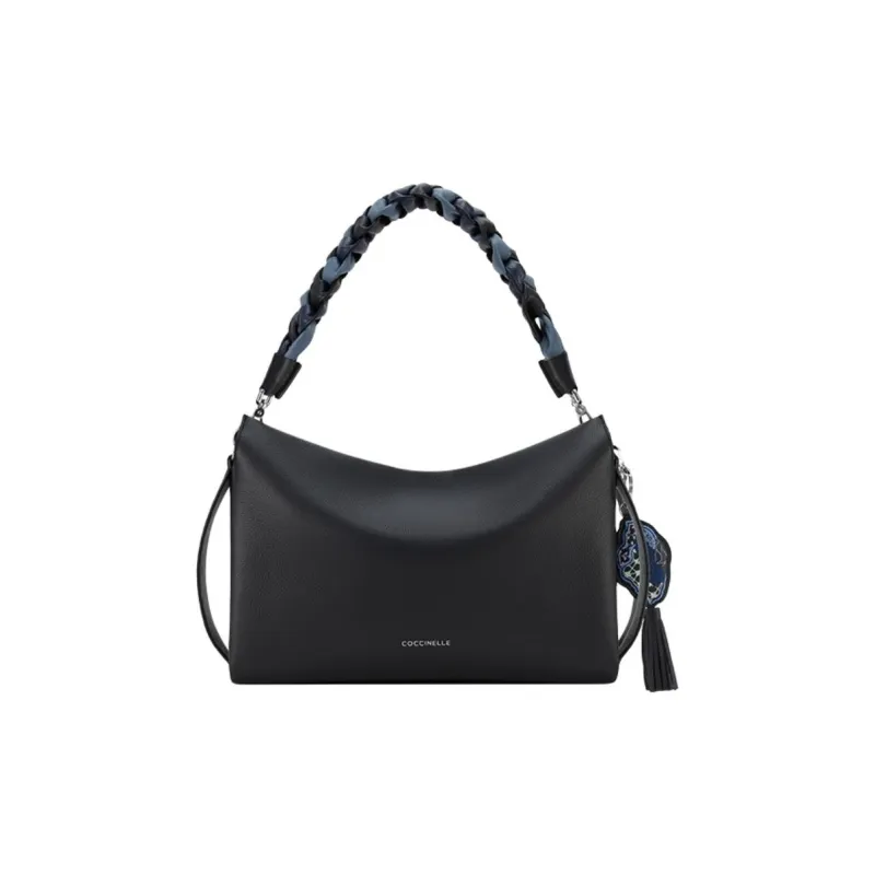 COCCINELLE JI CHENG Коллаборация Коровья кожа Портативный Сумка через плечо Сумка на плечо Большая Женская Черная и Мокко