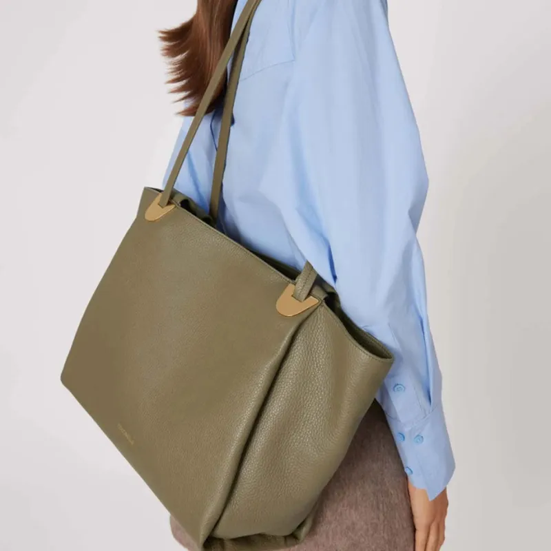 COCCINELLE GRAIN LEATHER Тоут Сумка Сумка для покупок Сумка на плечо Сумка среднего размера Женская Лавровый зеленый