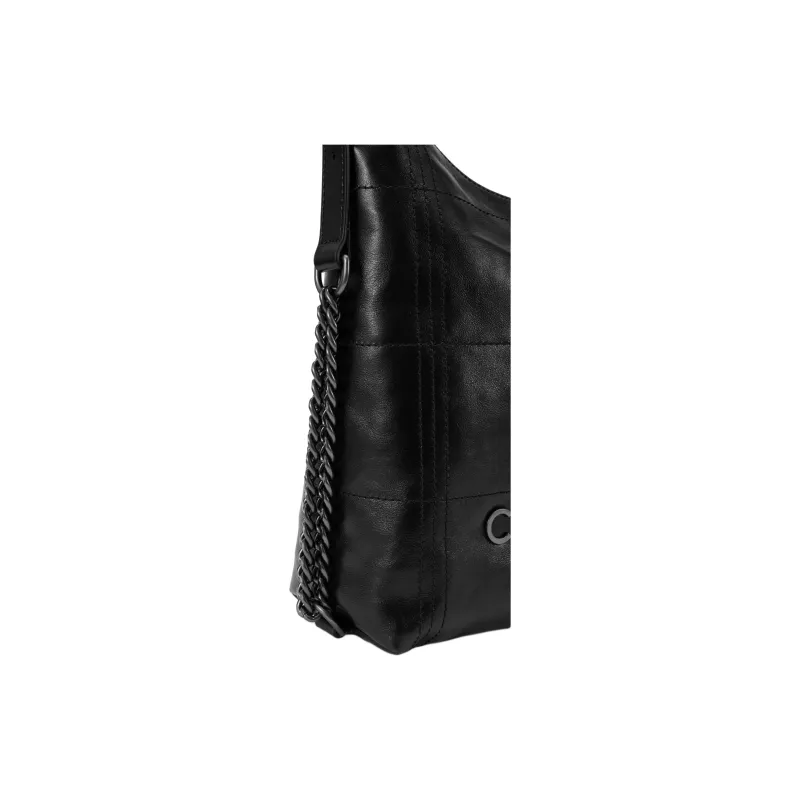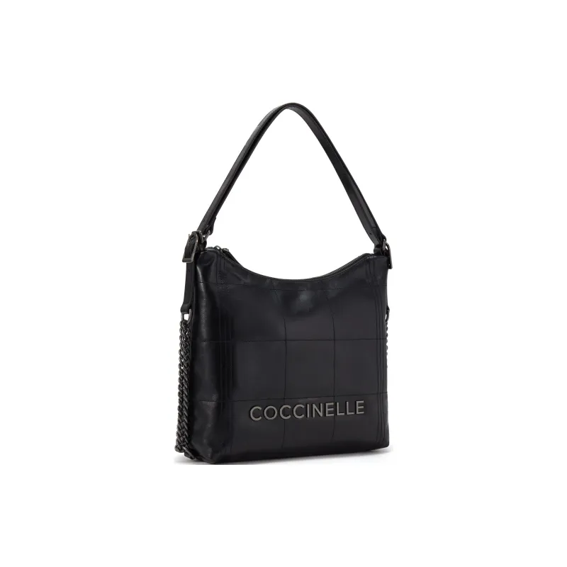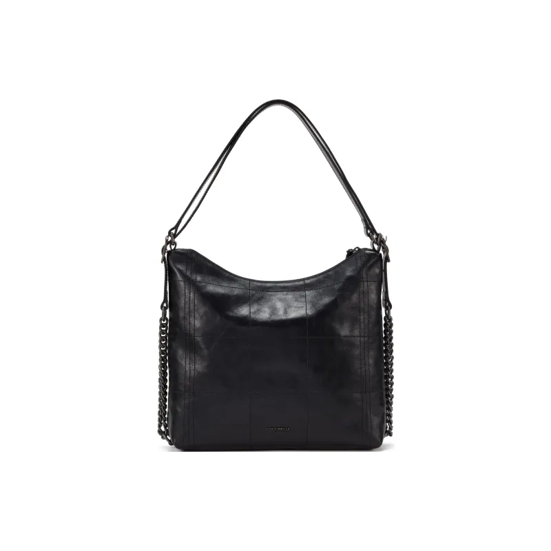 COCCINELLE Вощеная кожа Сумка через плечо Большая Женская Черная Светло-серая