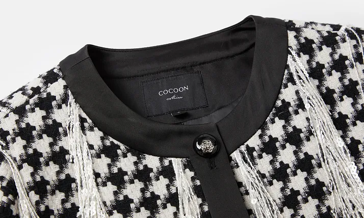 Основная ткань: 60,4% полиэстер, 20,5% регенерированное целлюлозное волокно, 15,7% полиамид, 3,4% хлопок. Нить вышивки: 100% полиэстер. Отделка: 100% полиэстер. Подкладка: 100% полиэстер