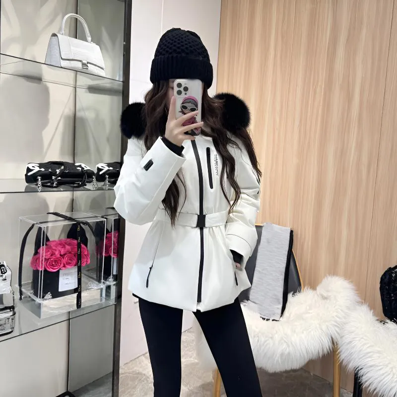 COHX Белый Ремень Женские Пуховые куртки