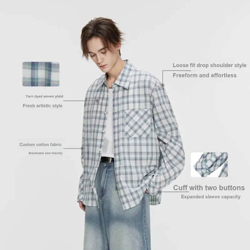 COKEIN SS25 Рубашка Мужская Синяя и Зеленая Клетка