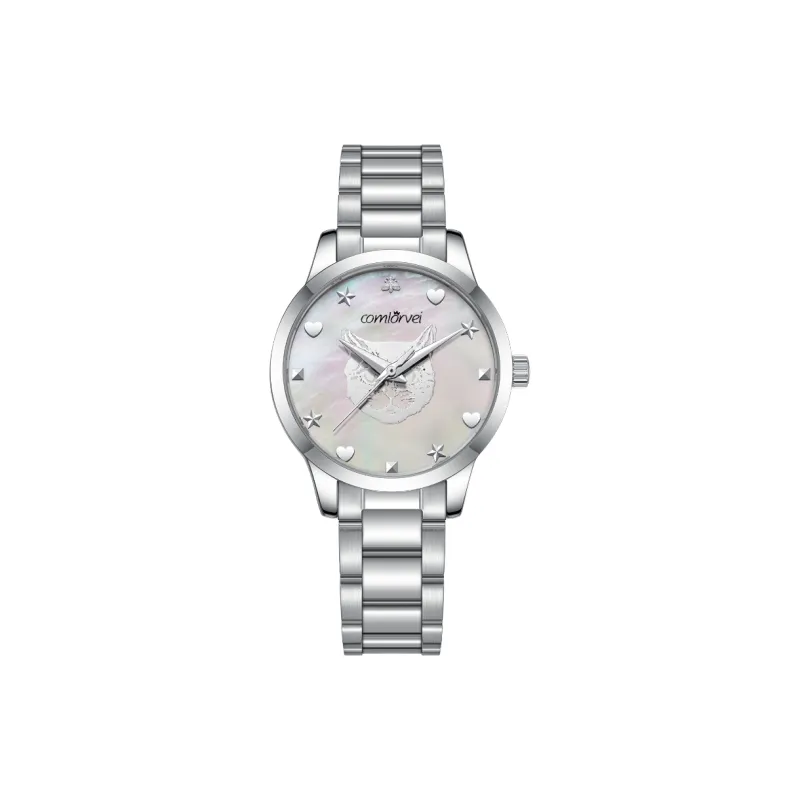 COMLORVEI Кварцевый механизм нержавеющая сталь ремешок часы женские розовый циферблат