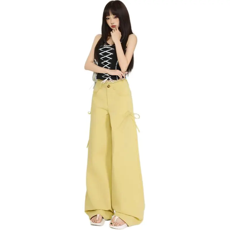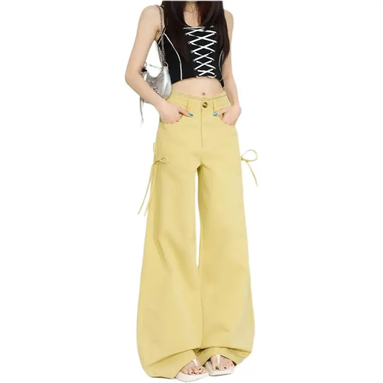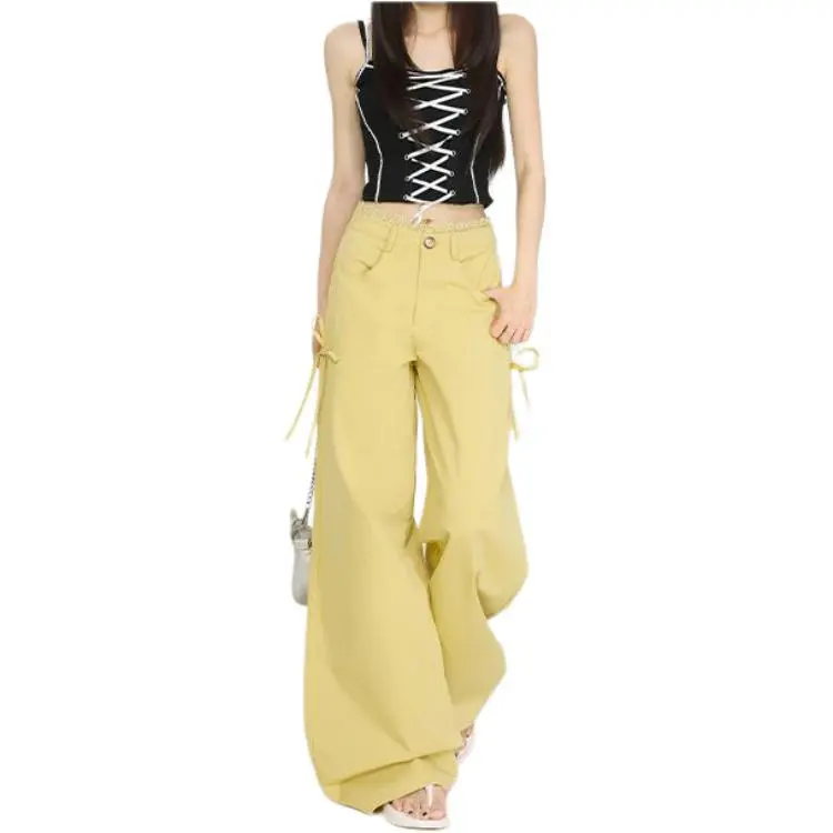 Concubine Zhu Повседневные брюки Женские Оливково-желтые