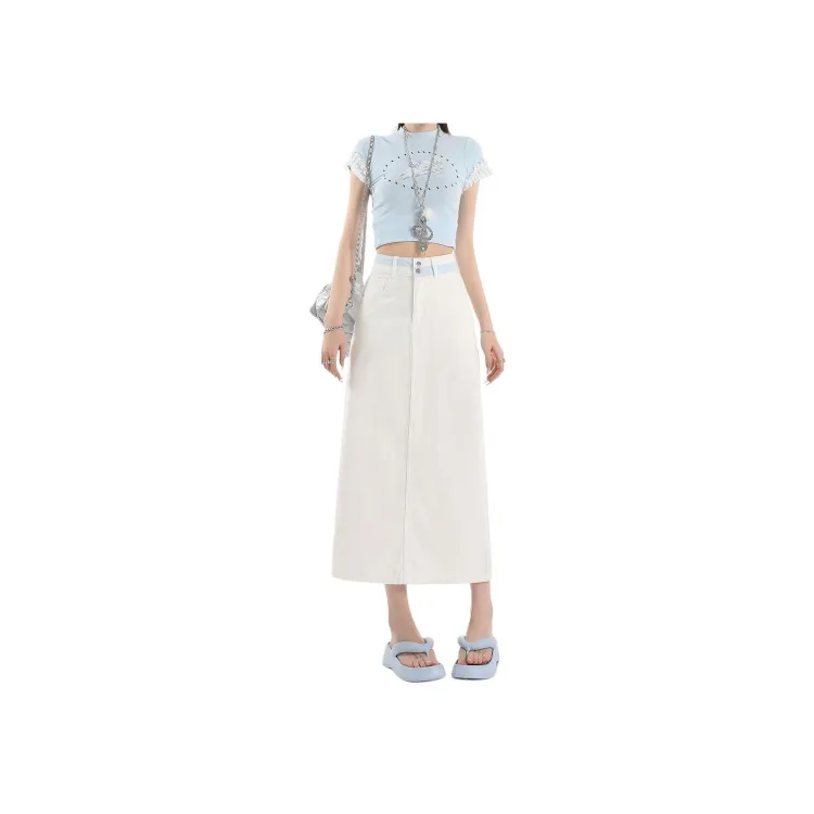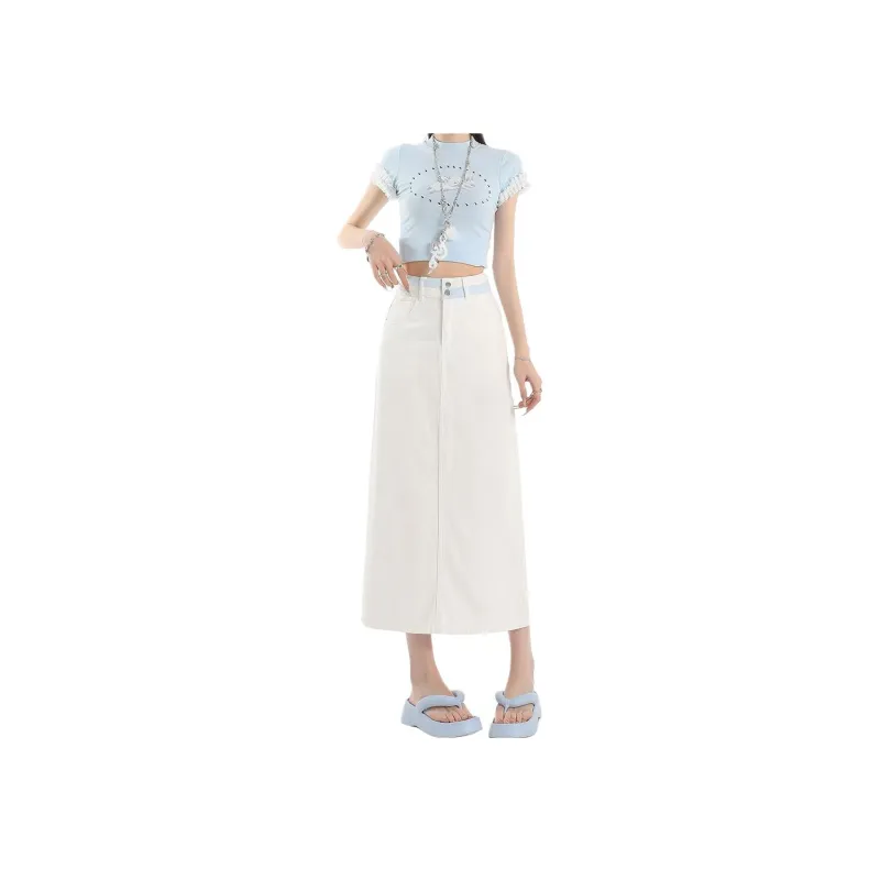 Concubine Zhu Denim Длинная Юбка Женская Экрю