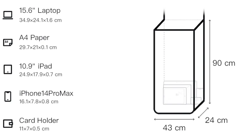 Длина 43 см * Ширина 24 см * Высота 90 см