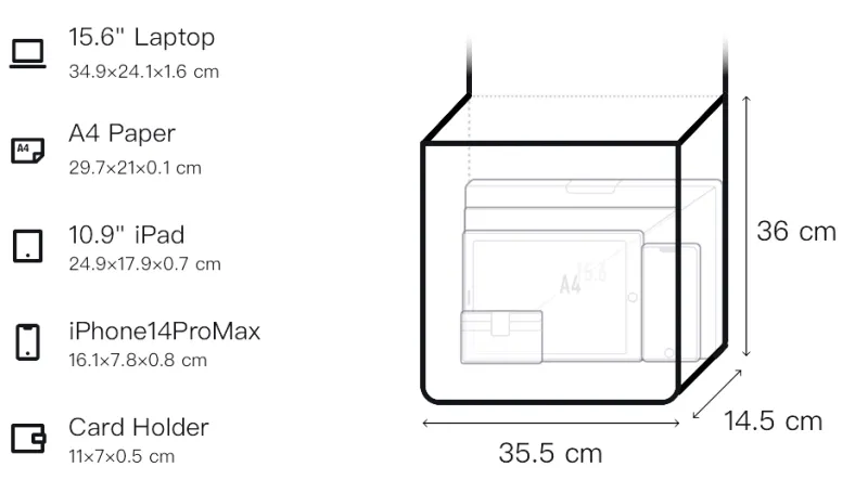 Длина (размер в длину): 35,5/50 см, Ширина корпуса: 14,5 см, Длина корпуса: 36 см