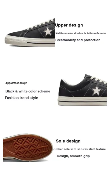 Конверс One Star Pro Кожа Устойчивая к абразиву Противоскользящая Низкий Топ Скейтборд Кроссовки Унисекс Черный