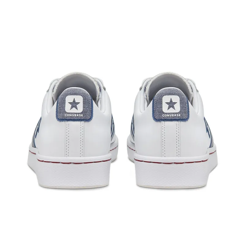Конверс Cons Pro Leather Легкий Низкий Топ Скейтборд Кроссовки Унисекс Белый Синий