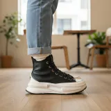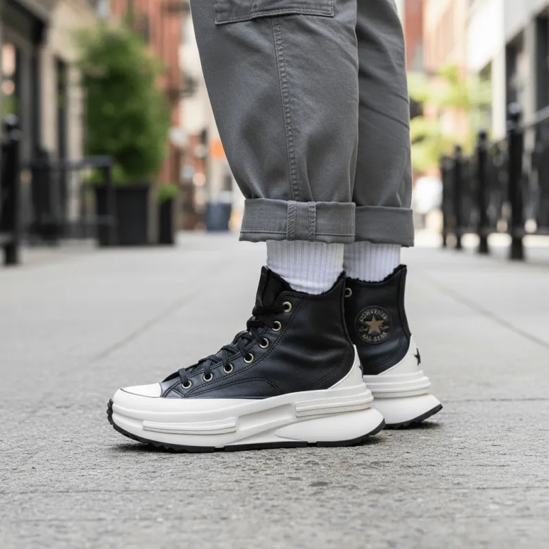 Converse Run Star Legacy — это универсальная модель высоких повседневных кроссовок для мужчин и женщин. Классический черный цвет делает их стильными и универсальными. Верхняя часть обуви изготовлена из высококачественных материалов, обеспечивая приятную текстуру и комфорт. Высокий берц обеспечивает дополнительную поддержку лодыжки и добавляет образу индивидуальности. Эти кроссовки легко сочетаются с джинсами, спортивными брюками или повседневными юбками, подчеркивая уникальный стиль. Идеальный выбор для тех, кто ценит комфорт и моду, подходит для различных повседневных ситуаций.