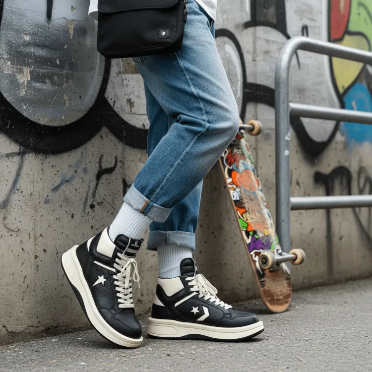 Кроссовки DRKSHDW x Converse TURBOWPN в ретро-стиле баскетбольной обуви привлекают внимание модного мира своим уникальным стилем и классическим дизайном средней высоты. Эта модель унисекс, стирая гендерные границы, позволяет каждому проявлять свою индивидуальность. Черно-белая цветовая гамма сочетает в себе лаконичность и элегантность, оставаясь классической и универсальной - они легко дополнят как повседневный, так и спортивный образ, подчеркивая его стиль. Объединяя модные элементы с концепцией ретро-баскетбольных кроссовок, эта модель представляет собой отличный выбор для тех, кто стремится к индивидуальности и современному стилю.