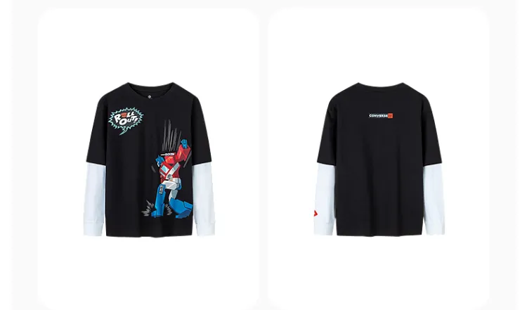 Конверс x Трансформеры T-рубашка Глубокий черный Детская для детей 3-7 лет