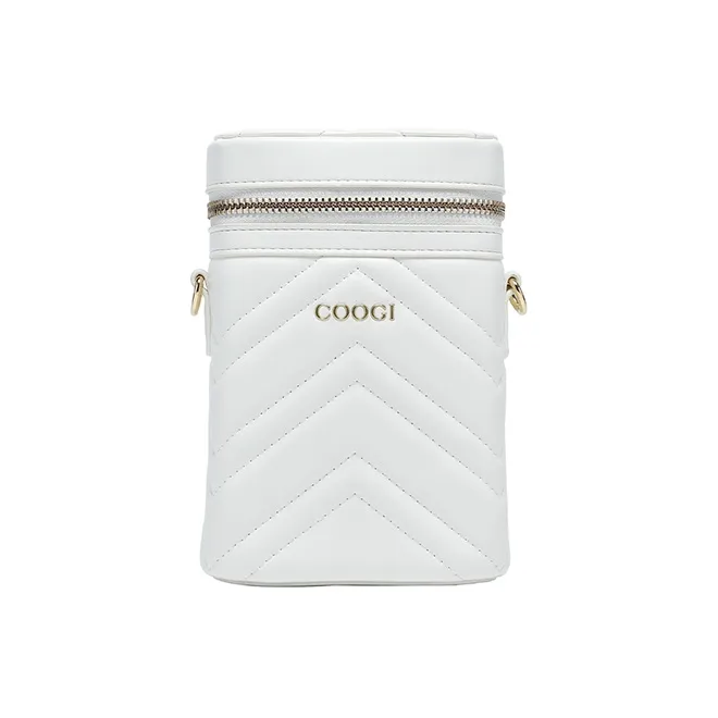 COOGI Синтетическая кожа Цилиндрическая сумка Сумка через плечо Стандартная Женская Экрю Черная