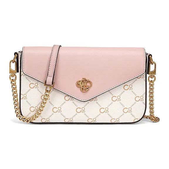COOGI Сумка через плечо из синтетической кожи конверт маленькая женская кофейного персиково-розового цвета