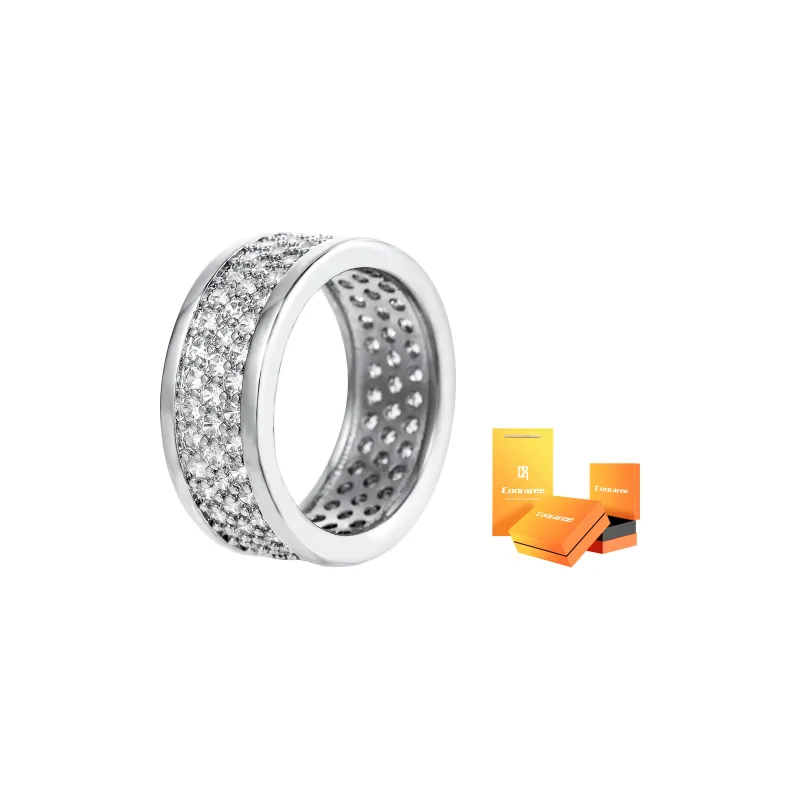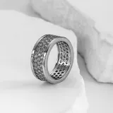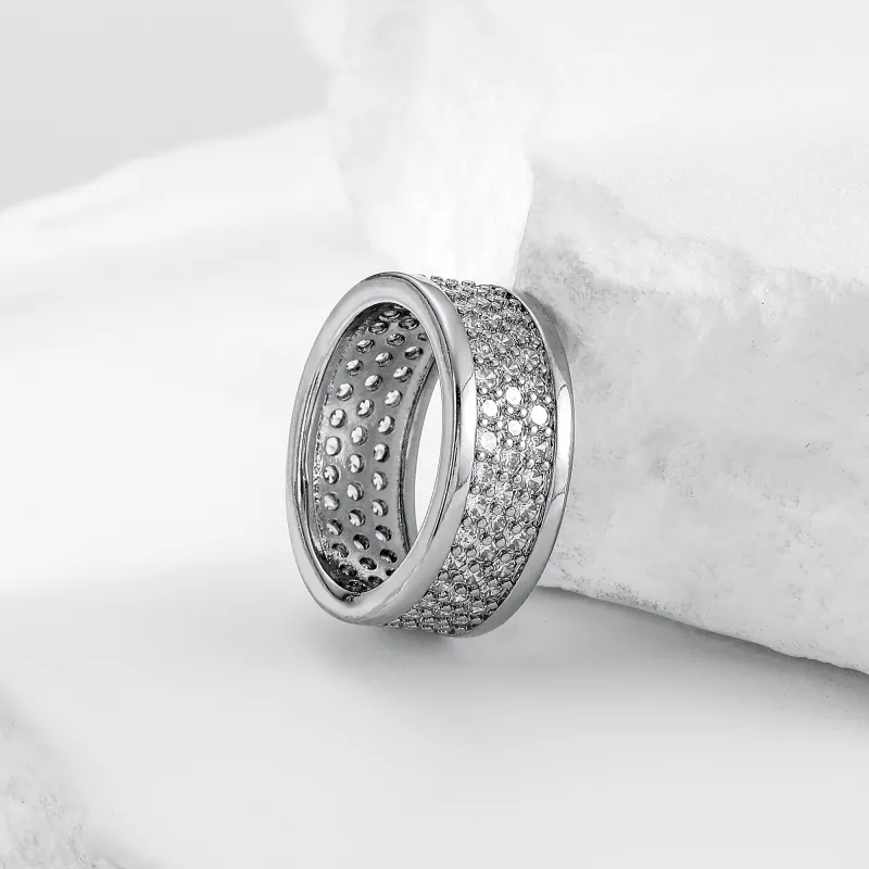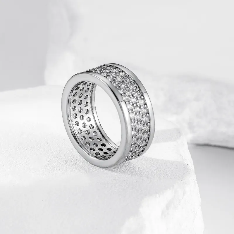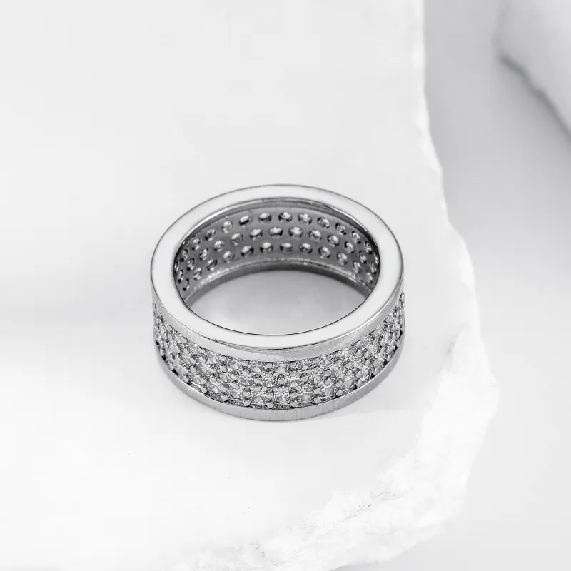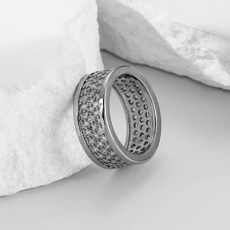 Широкая резинка, кольцо с тремя рядами цирконов