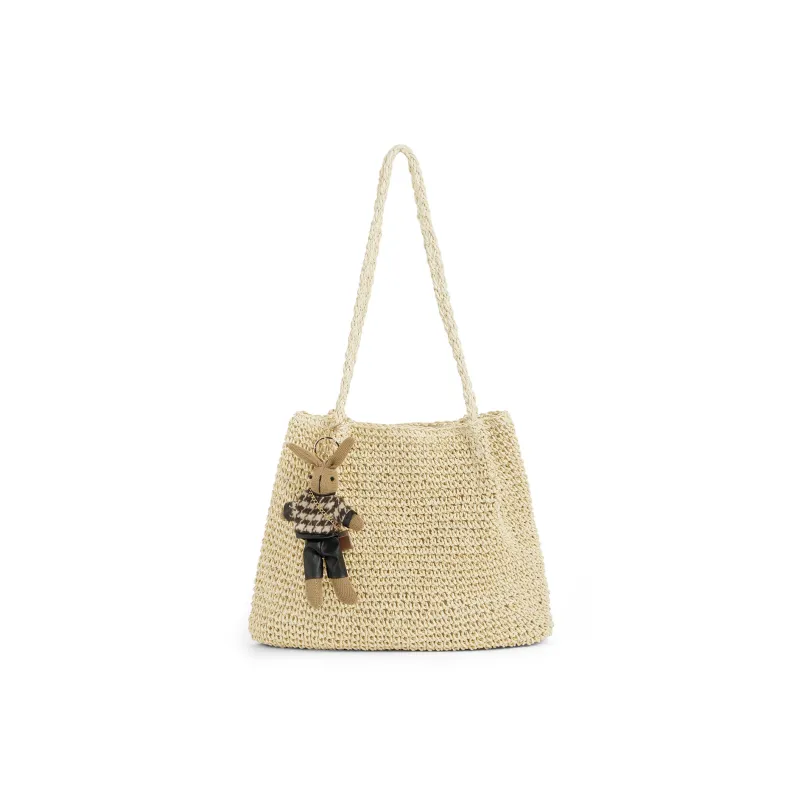 CORALDAISY Ткань Ноутбук Сумка Плетеная сумка Сумка Сумка через плечо Стандартная Женская Белая Абрикос