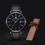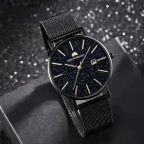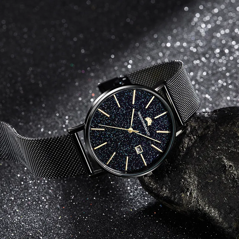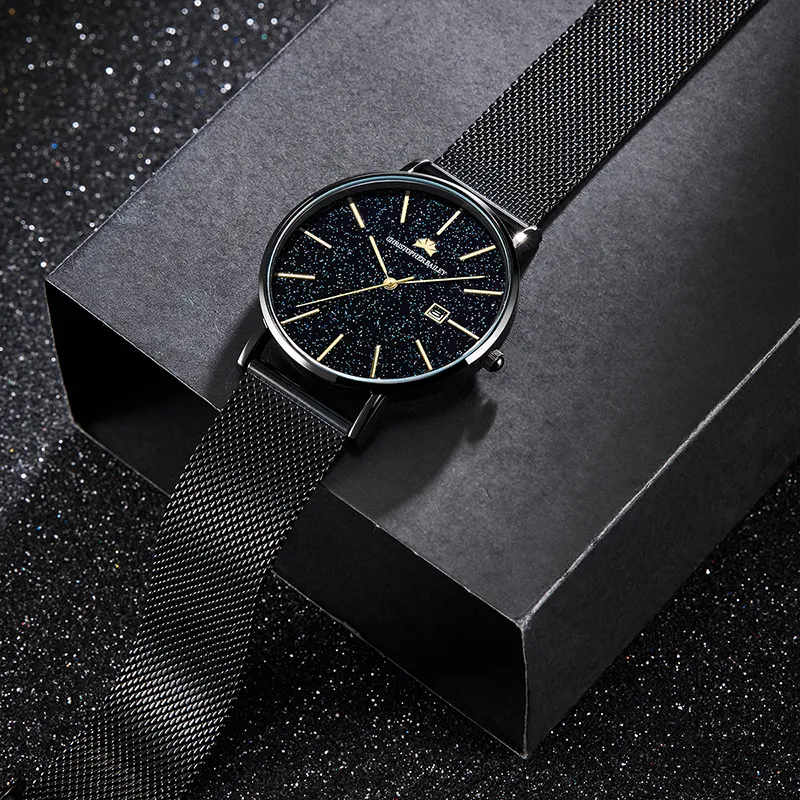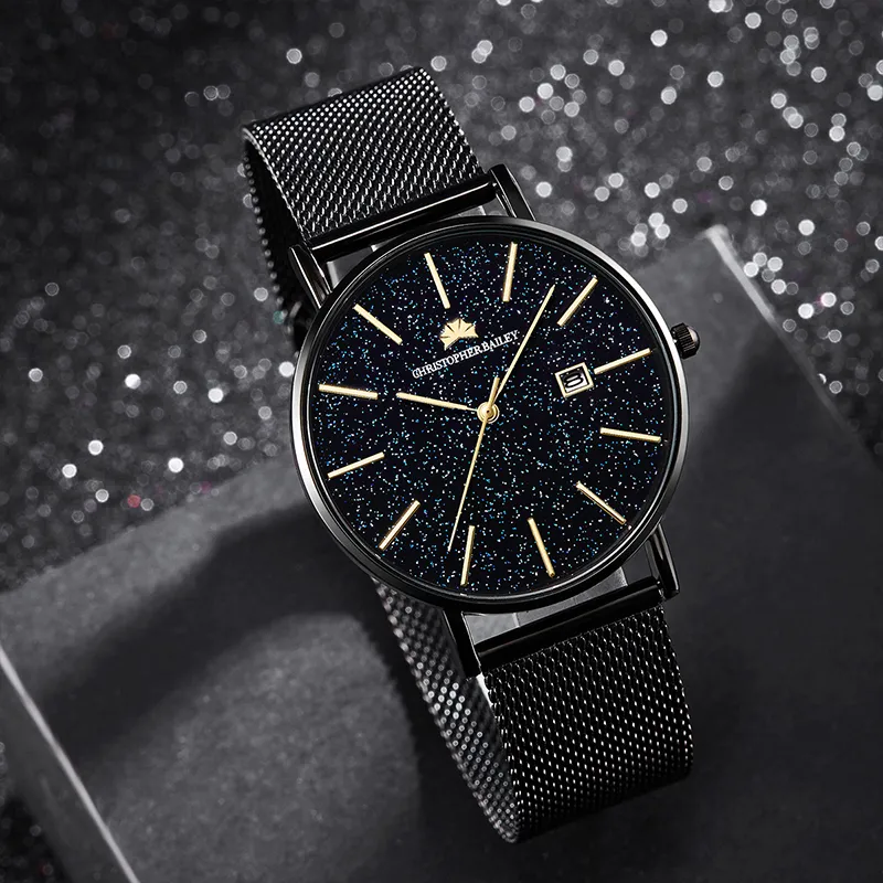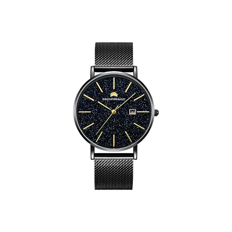 Corriberty Кварцевый механизм стальной ремешок мужские часы черный циферблат